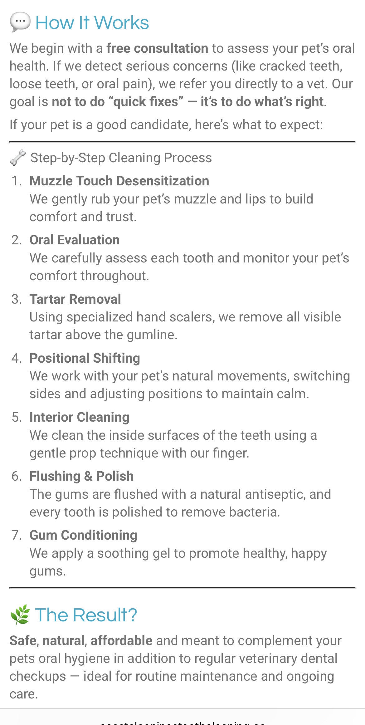 We do not treat or diagnose any conditions that require veterinary attention. If we notice signs of infection, loose teeth, or more advanced oral issues, we’ll refer you to your veterinarian.